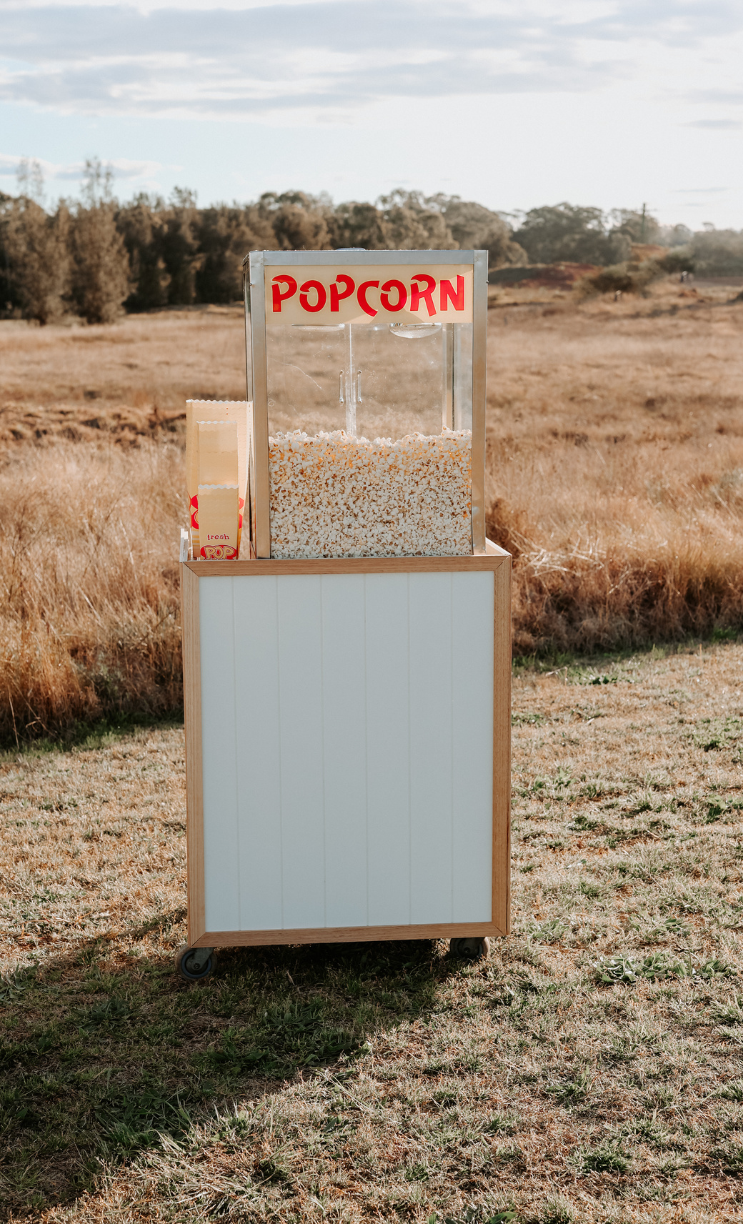 Includes: Popcorn cart, freshly prepared popcorn, a dedicated fluffy team member & set up/pack down. All required equipment is included.