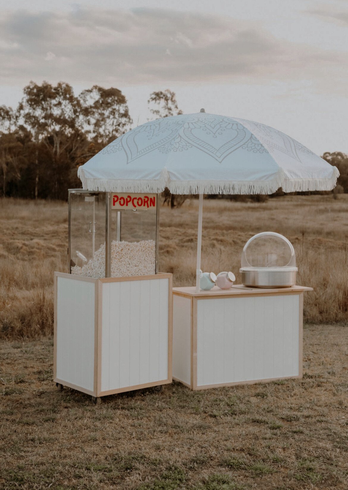 Includes: Fairy Floss station, two flavours of candy floss, Popcorn cart, freshly prepared popcorn, a dedicated fluffy team member & set up/pack down. All required equipment is included.